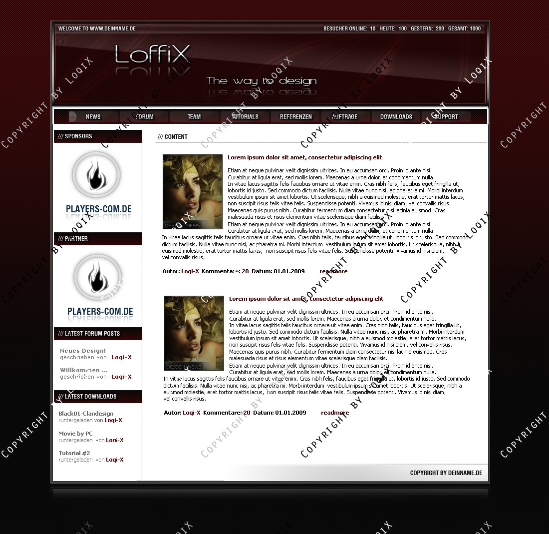 Portfolio-Design in dunkel roter Farbe. Ideal für Designer die ihre Arbeiten vorzeigen wollen.