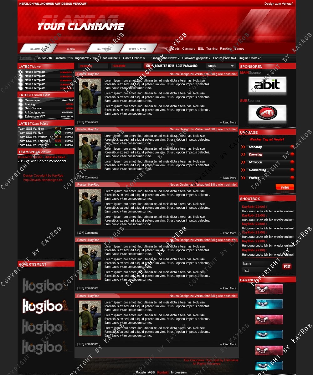 Dieses Clandesign darf OHNE genehmigung von mir Robert Erdmann nicht zum Free Download auf anderen Webadressen angeboten werde. Das weiter verschicken von Design.psd ist auch UNTERSAGT. Sollte es dies der Fall sein, werde ich Rechtliche Schritte einleiten und dies Ahnden!
