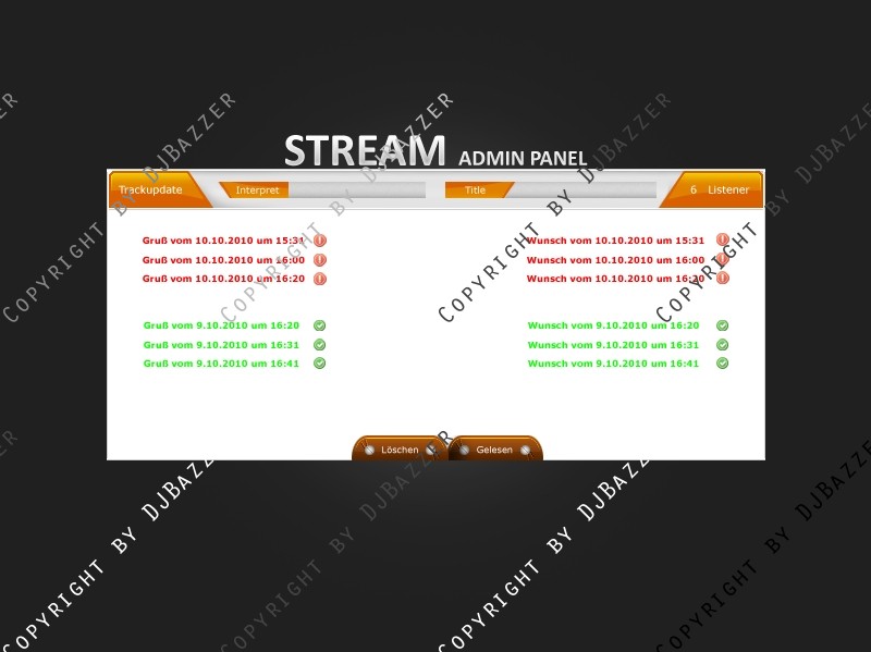 Einmal die Admin Seite, die die Moderatoren/Deejays oder Generell Admins einsehen können, wo Sie die Gruß und Wunschbox auslesen können und Tracklist schreiben können, auch da, gibts eine Listener Anzeige.