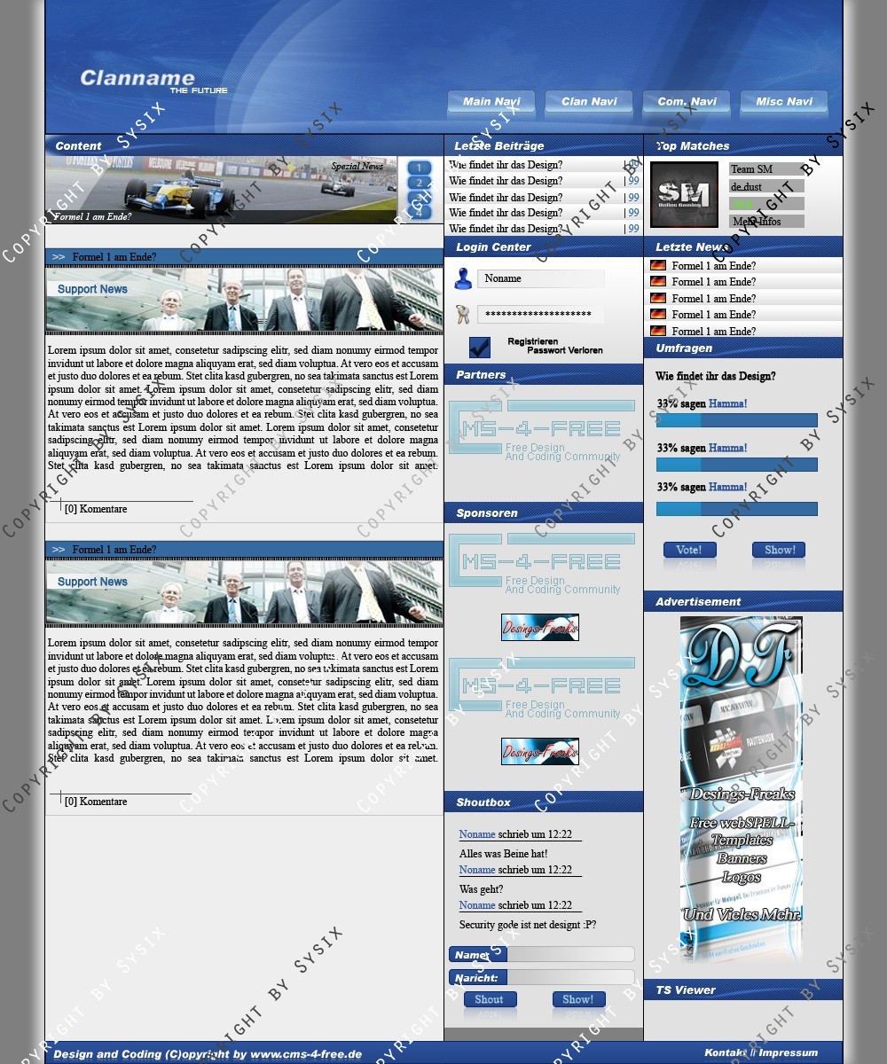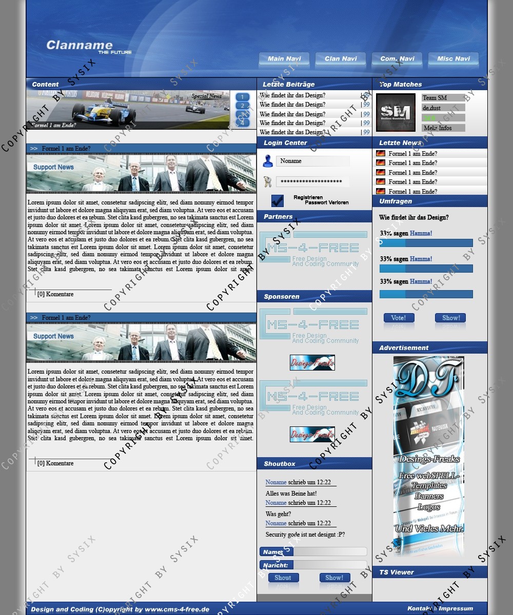 Du hast noch keinen Account auf ClanDesigns.de? Dann kannst du dich hier kostenlos registrieren!