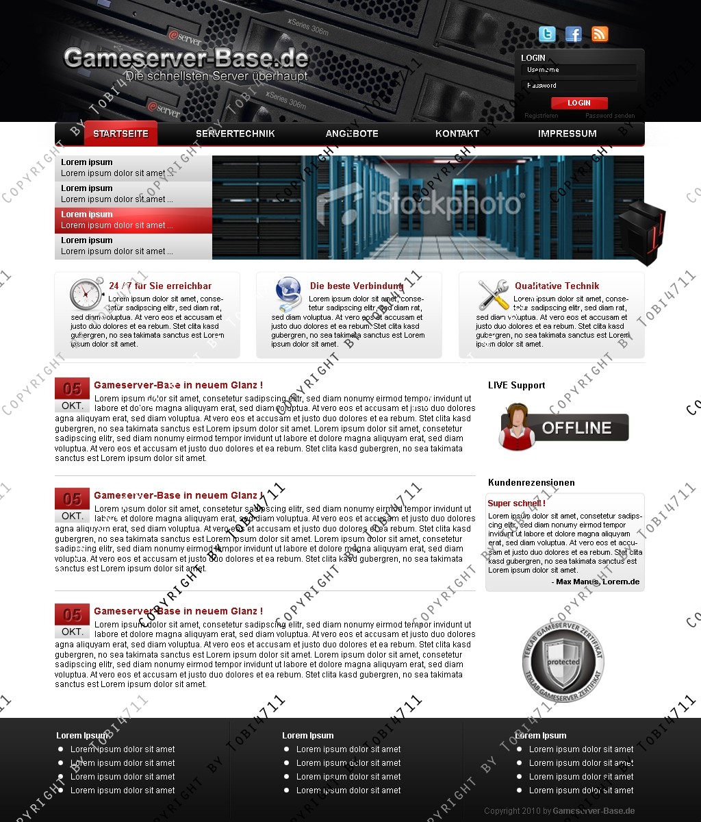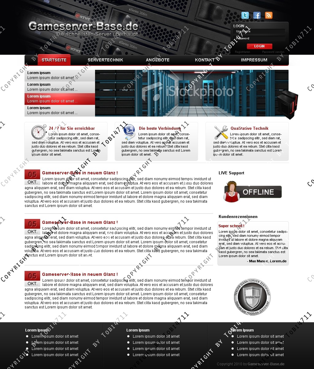 Biete hier ein schlichtes gut übersichtliches Hosting Design an.