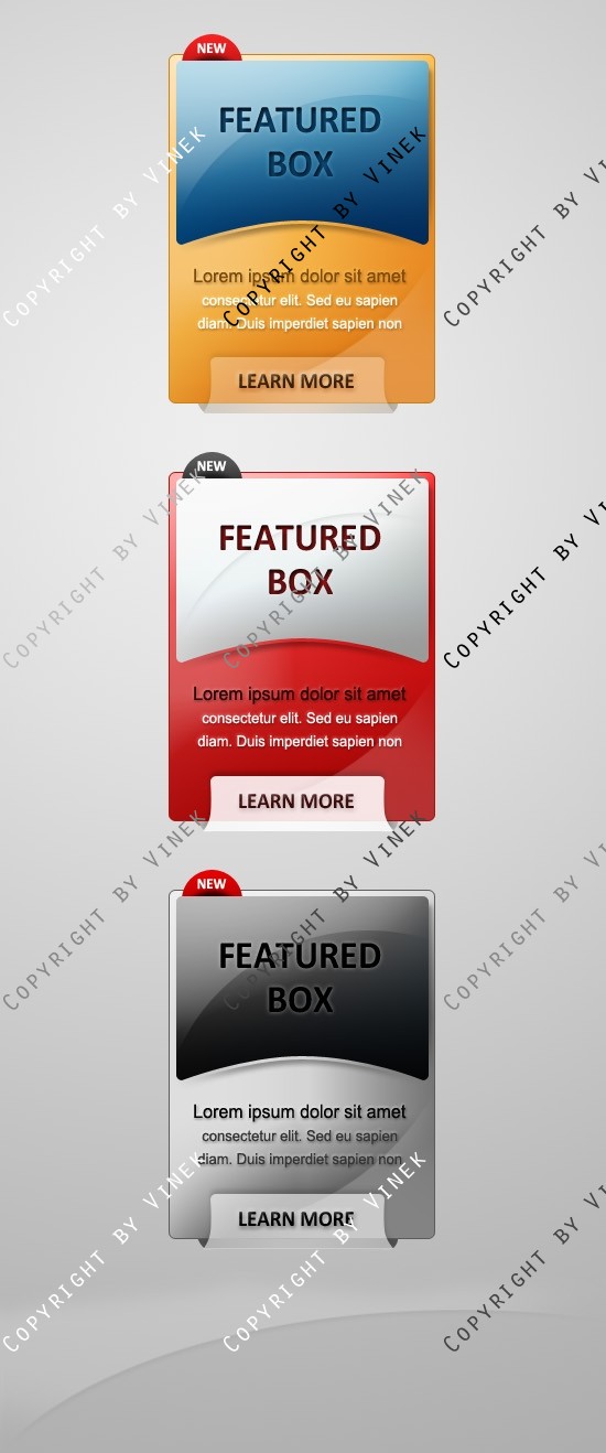 Dies sind 3 Featured Boxen in PSD Format.