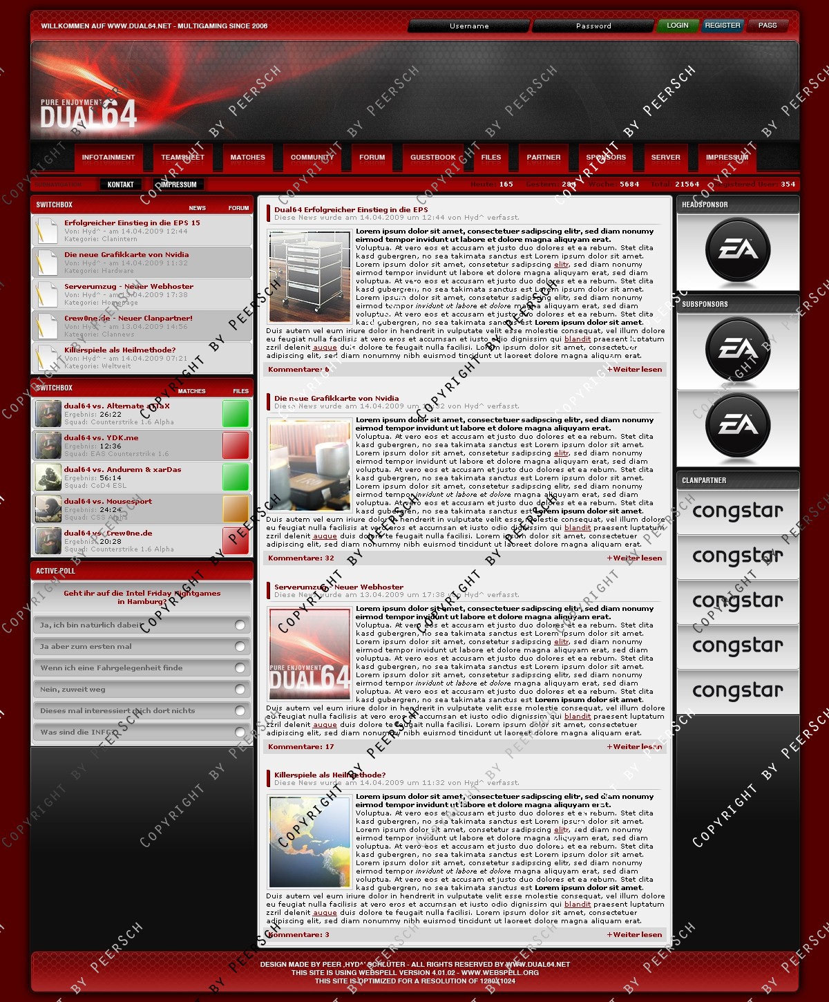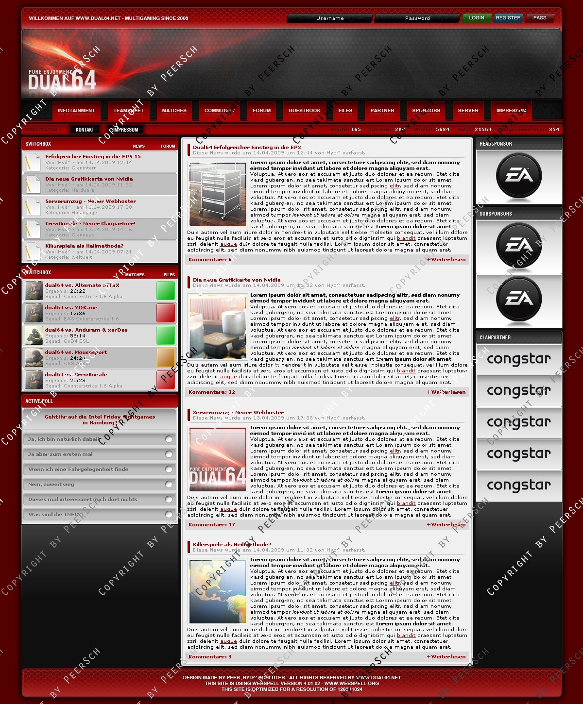 Was Sie hier kaufen ist lediglich die PSD Datei, gerne kann ich es Ihnen gegen einen Aufpreis von 13€ an ein CMS Anpassen, zur Auswahl stehen hierbei: webSPELL, Clansphere, Teklab, Devilz und andere CMS auf Anfrage ohne Aufpreis.
