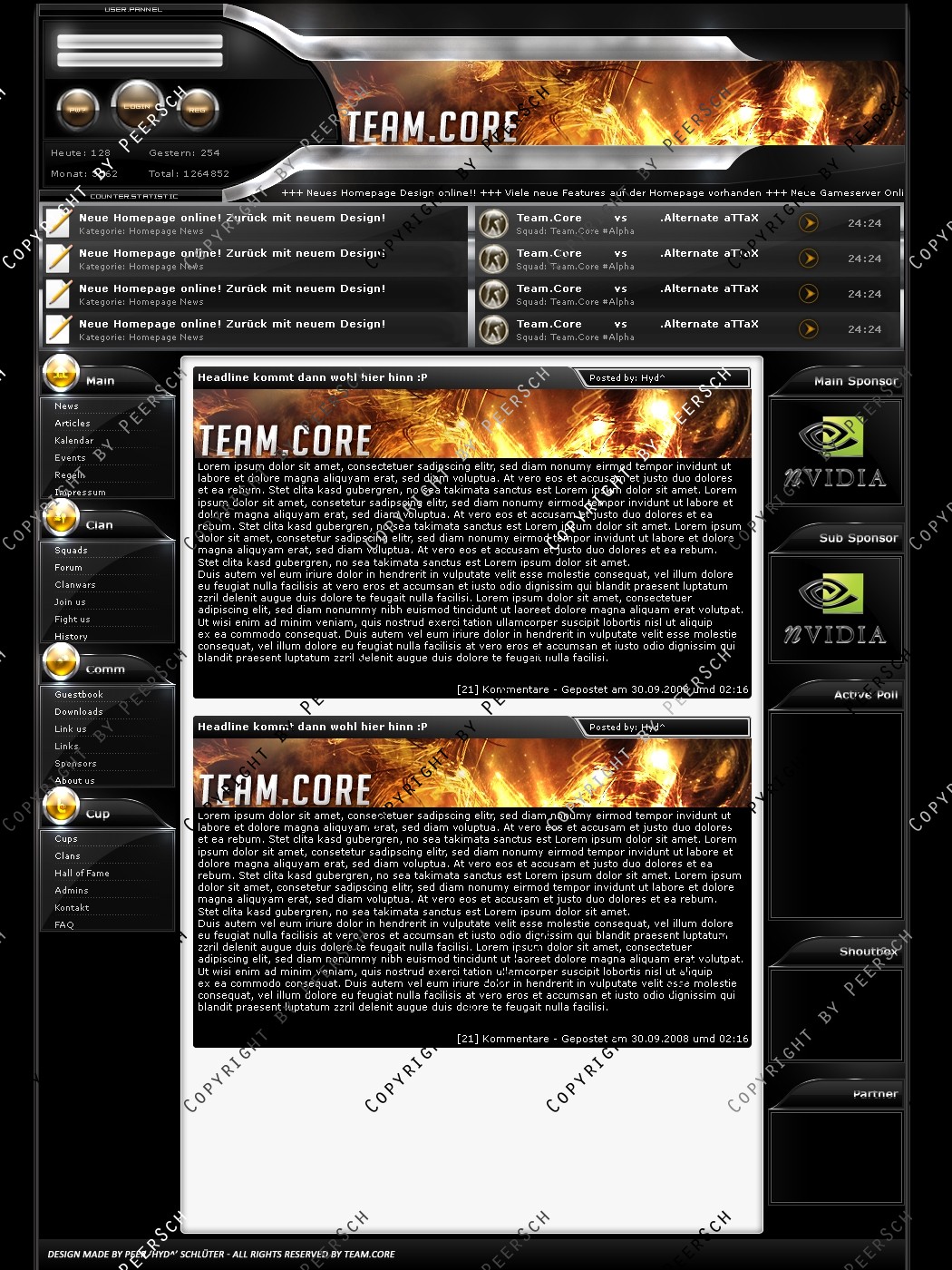 Was Sie hier kaufen ist lediglich die PSD Datei, gerne kann ich es Ihnen gegen einen Aufpreis von 13€ an ein CMS Anpassen, zur Auswahl stehen hierbei: webSPELL, Clansphere, Teklab, Devilz und andere CMS auf Anfrage ohne Aufpreis.