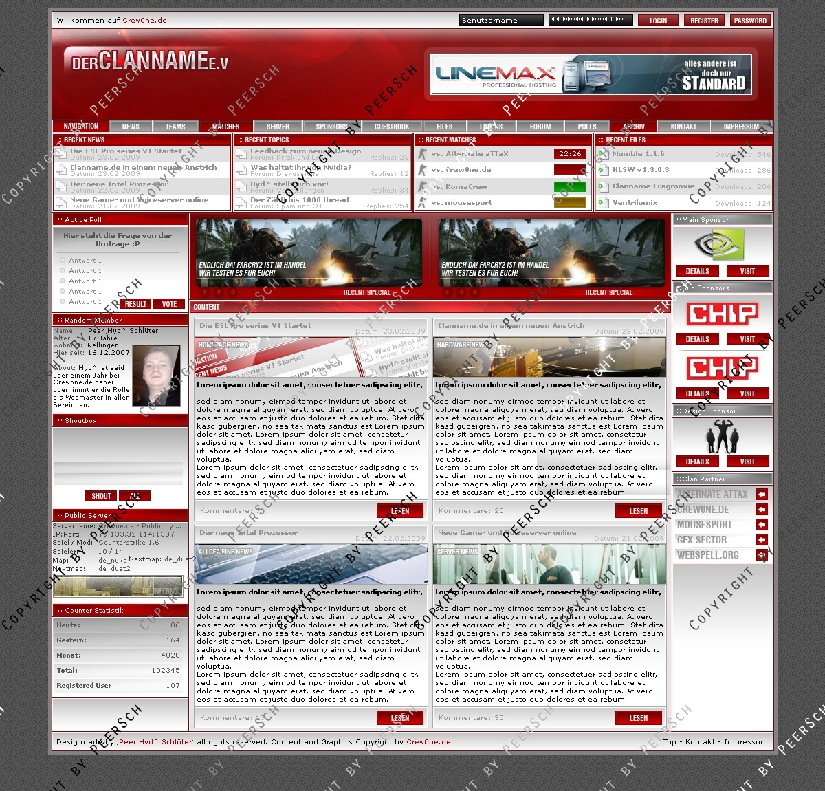 Was Sie hier kaufen ist lediglich die PSD Datei, gerne kann ich es Ihnen gegen einen Aufpreis von 13€ an ein CMS Anpassen, zur Auswahl stehen hierbei: webSPELL, Clansphere, Teklab, Devilz und andere CMS auf Anfrage ohne Aufpreis.