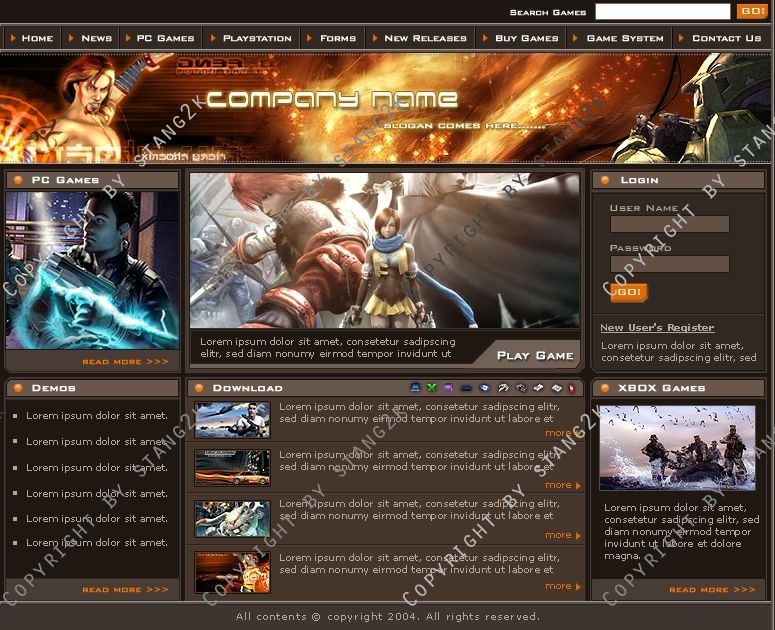 Dieses Design ist optimal für Gamercommunitys oder Clans. Das Design ist in braun und kann danke der mitgelieferten PSD und der Schriftarten nach eigenen Wünschen verändert werden.