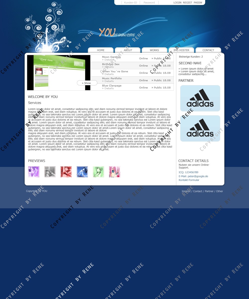 Ein Blaues Template. Es kann für Code oder Design Arbeiten genutzt werden. In dem Design ist ein Work Slider drinne.