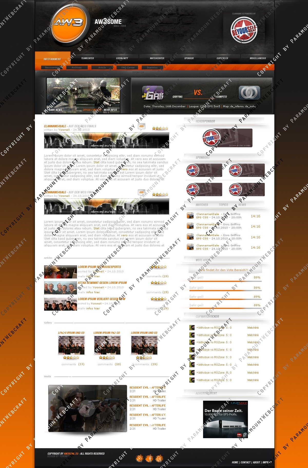 In diesem Packet erhalten Sie eine Photoshop Datei (.psd) für ein Clandesign in Orange. Alle Logos, Bilder, Namen sind rein zu Demozwecken eingefügt worden. Das Logo ist rein fiktiv.