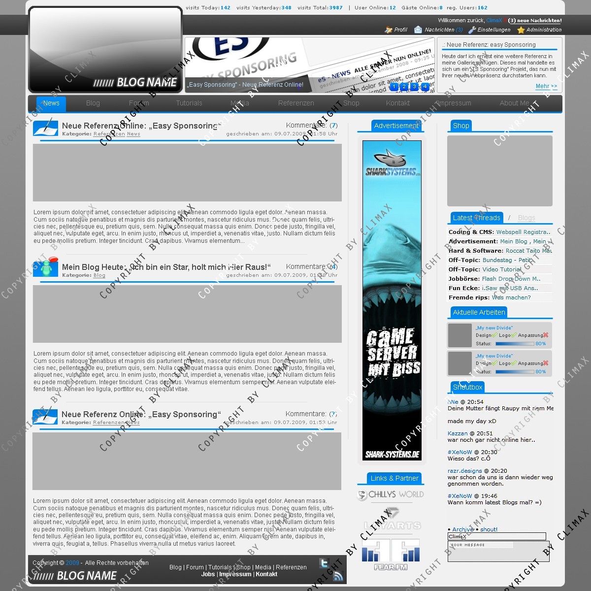 Stelle hier ein Blog / Portfolio Layout zum Verkauf. Das Design war noch nie Online. Änderungen am Layout können natürlich auf Wunsch gemacht werden. Angeboten wird hier nur die .PSD Datei ohne jegliche Anpassung. Kein Logo zum Design mitenthalten. Bei Fragen stehe ich entweder hier oder in meinem Forum zur Verfügung.