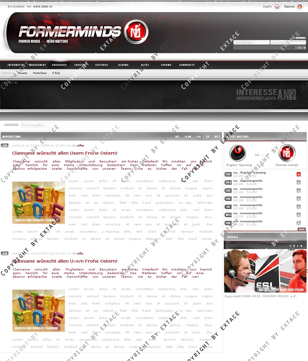 • Anpassung der Homeapage an ein CMS (webSPELL o.ä.) möglich (Zusatzkosten je nach Umfang - nur nach Absrpache)