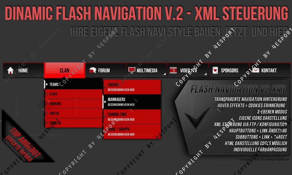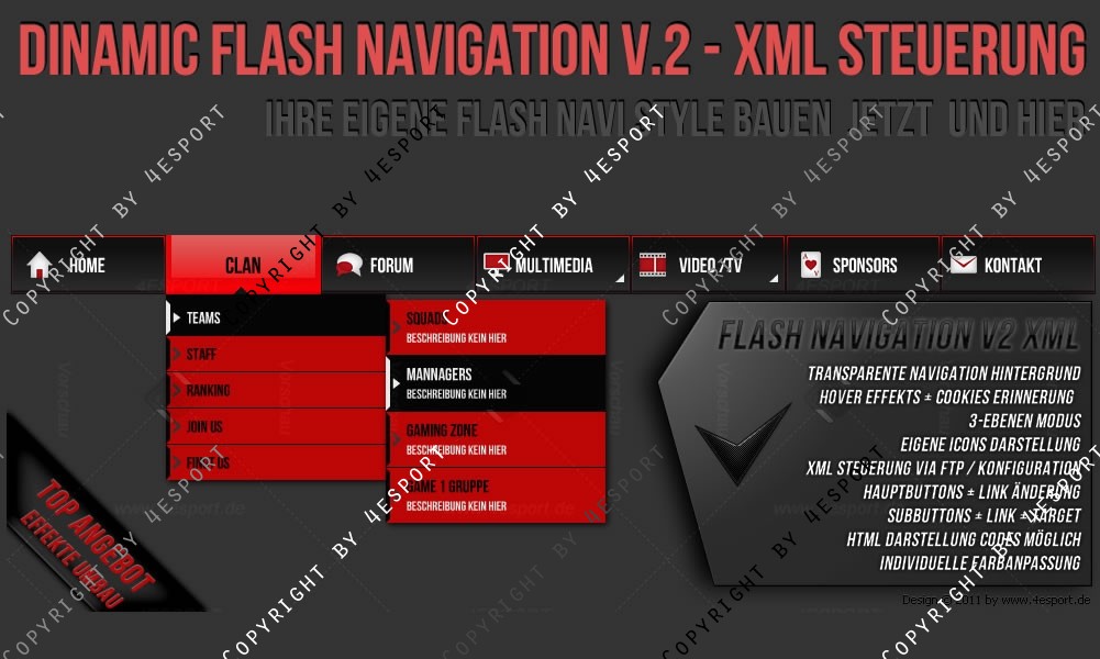 • Flash Animation (Buttons, Sub buttons, Hover Effekte)