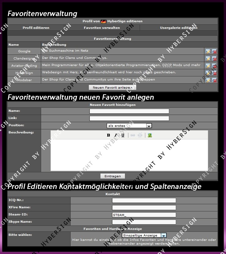 - Anzeige von User Web Favoriten die sich bequem beim Profil editieren anlegen lassen.