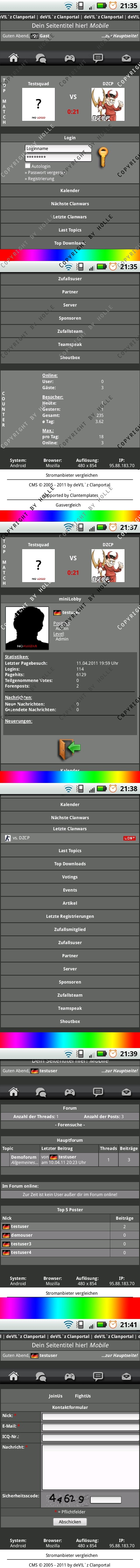 Eine spezielle Ansicht für das Forum, Squads/Teams & Gästebuch sind integriert. Außerdem ist wurde das Kontaktformular mit Join- & Fightusbereich in das "Minimenü" integriert. Des weiteren findet man beim Betreten der Seite einen Login Bereich vor, wo - nach dem Einloggen selbstverständlich ;) - eine kleine persönliche Statistik und die Neuerungen seit dem letzten Pagebesuch kompakt dargestellt werden.