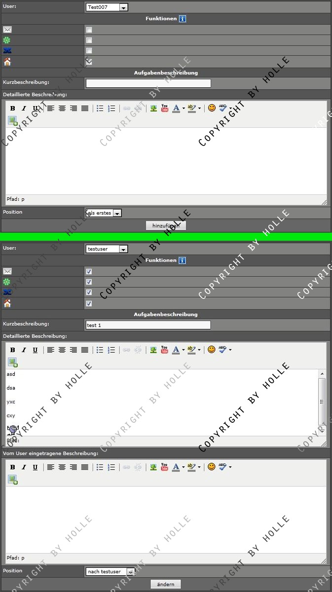 Bild 4: Oben: Formular zum eintragen einer neuen Aufgabe, Unten: Aufgabe editieren