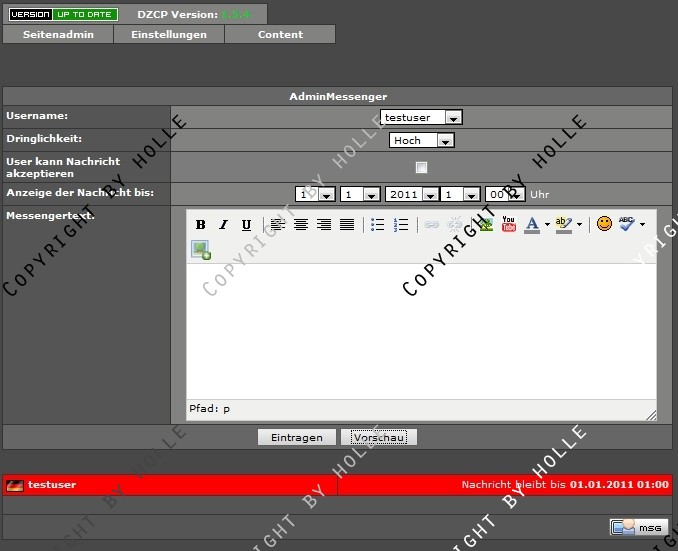 Nachdem mich einer meiner Mitadmins auf die Idee gebracht hat, ein Nachrichtensystem zu bauen, was einem Admin gestattet, einen User direkt anzuschreiben und eine Nachricht für längere Zeit bei ihm als Info anzeigen zu lassen, habe ich mich drangesetzt und ein neues Addon gecodet.