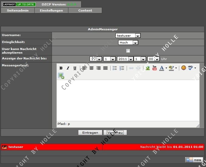 Hier nun mein Ergebnis: das AdminMessenger Addon