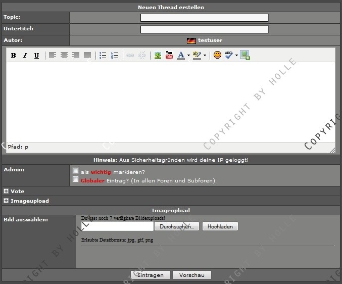 + ...können direkt Bilder im Forum während des Thread oder Post erstellens uploaden