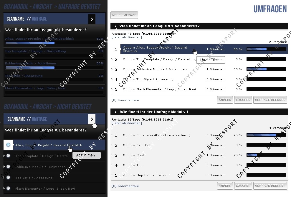 Hier erhalten Sie für ihre Clanhomepage ein Professionelle Poll/Umfrage Modul Erweiterung.