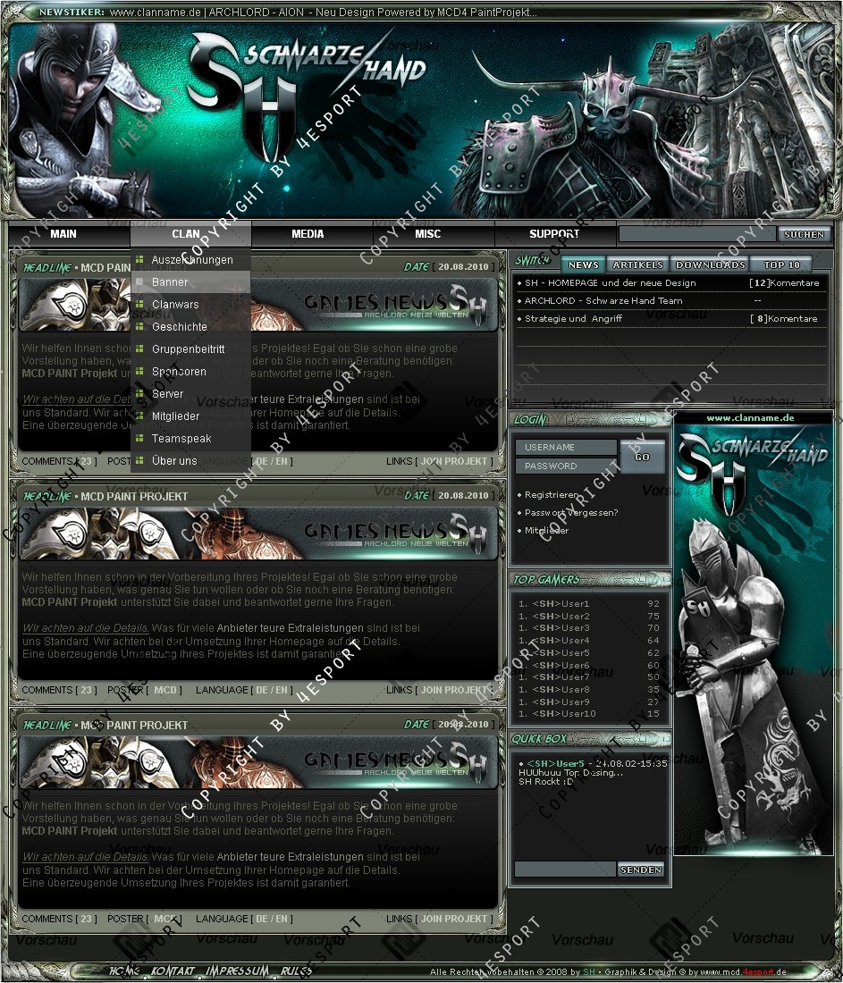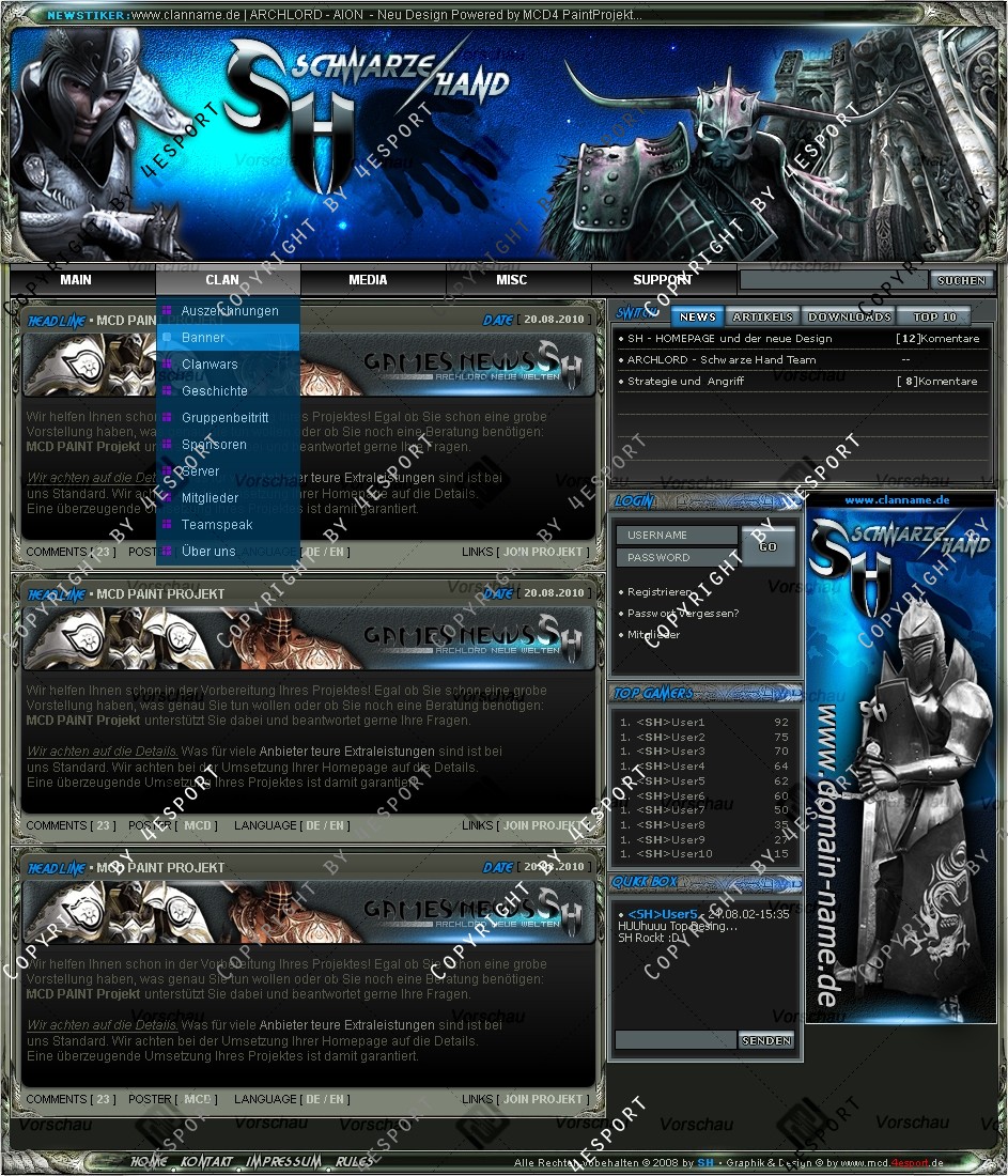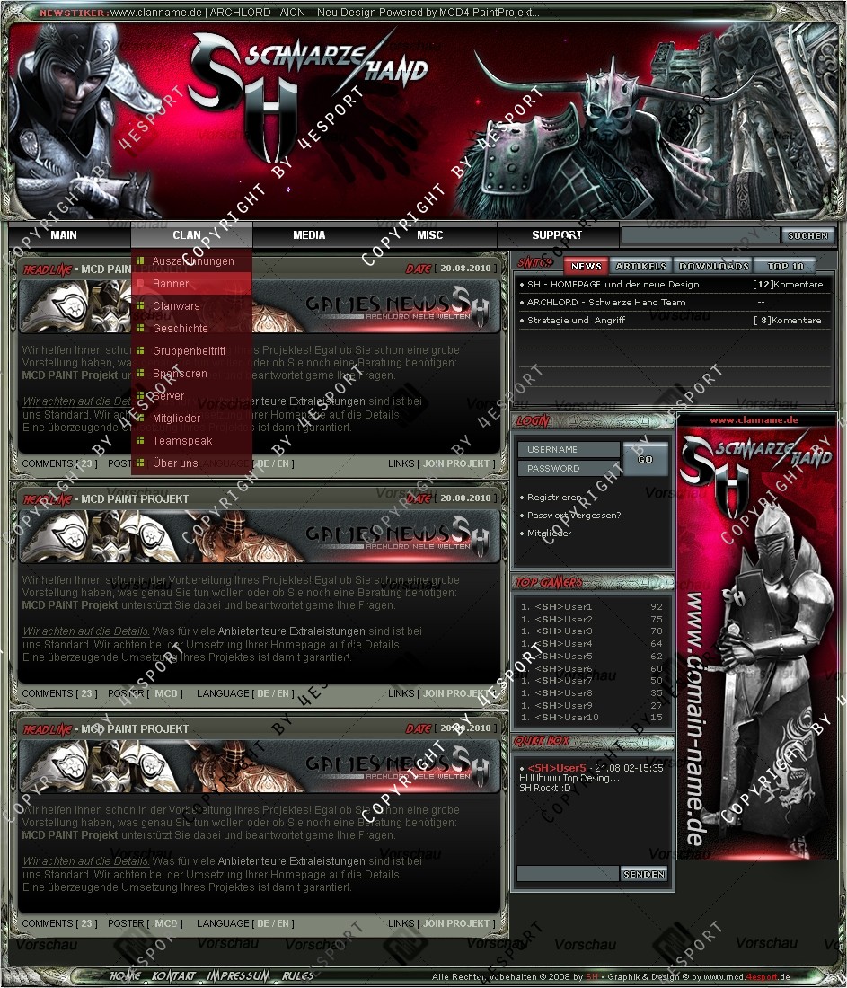 Du hast noch keinen Account auf ClanDesigns.de? Dann kannst du dich hier kostenlos registrieren!