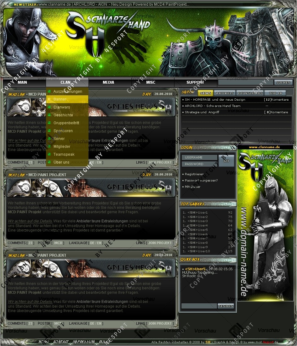 Wir können auch Ihre EXKLUSIVE Farbanpassung anfertigen bzw.: Neue LOGO CLAN NAME, Rahmen, Boxen Hintergründe, Titel-Fonts, Verlauf-Farben, Boxen Anordnung, usw....  das alles ist nur in EXKLUSIVE PREIS enthalten.