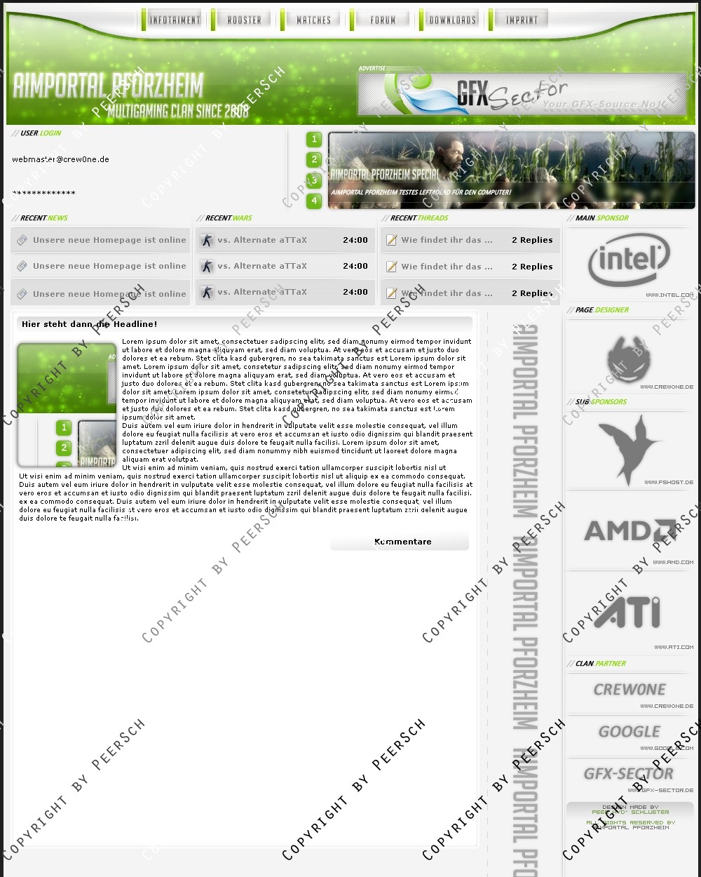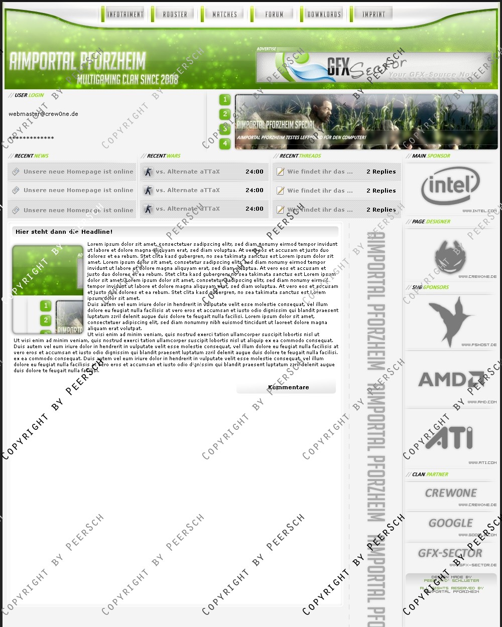 Dieses Template ist angepasst auf eine etwas ältere Version des webSPELL CMS. Bei Fragen oder ähnlichem melden Sie sich doch bitte per Email bei mir; [email protected].