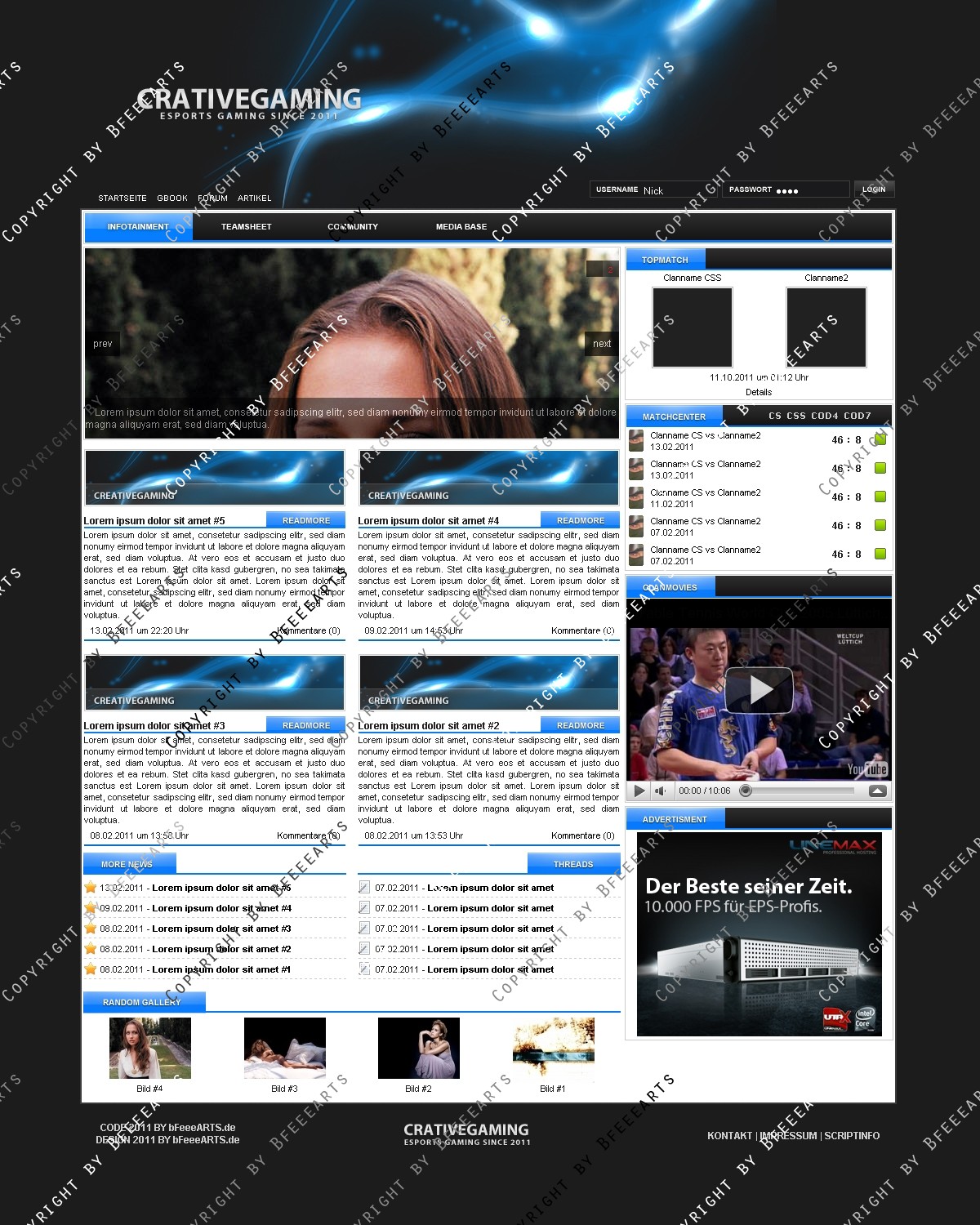 - modifizierter Newsbereich mit "2 spalten News" "last news" "last Board" "gallery"