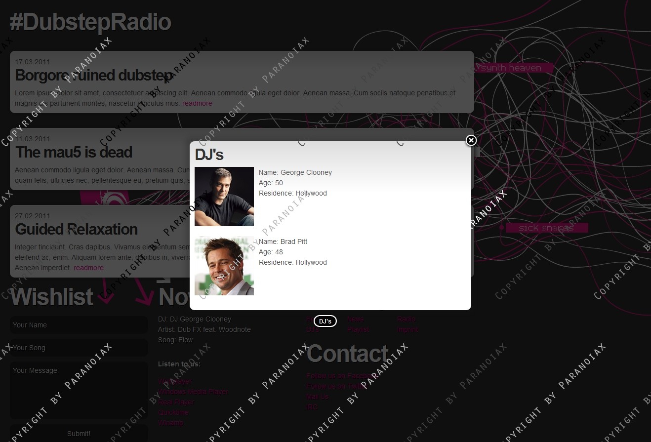 - Ajax Call für Radio, Dj's, Playlist und Imprint