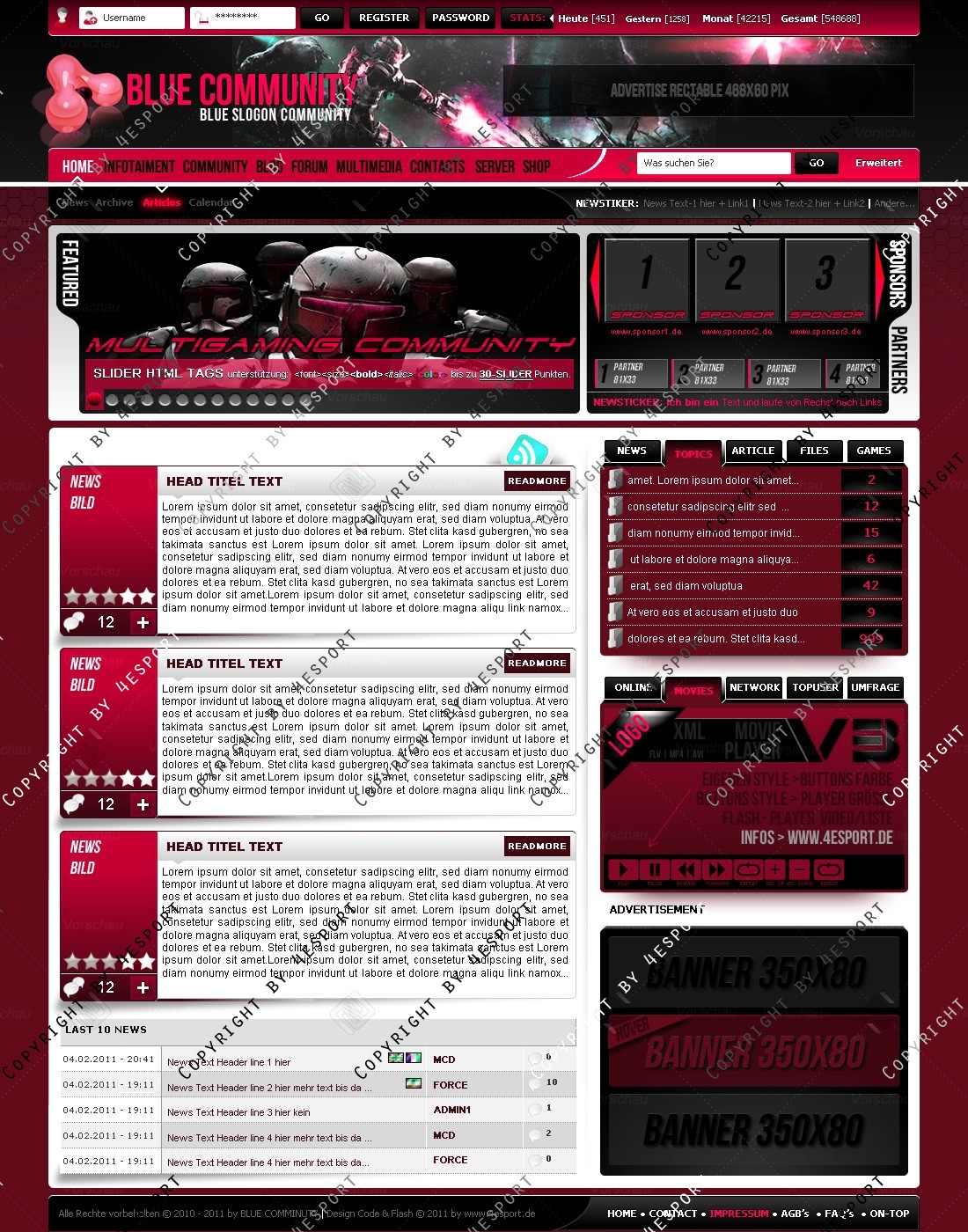 Blue Community Templates Premium edition mit Flash Player 1 V3 Custom Edition und Featured System, CMS Erweiterung Webspell 4.2.2a, wird auf wunsch auf ClanWORLD v1.1 auch gecodet.