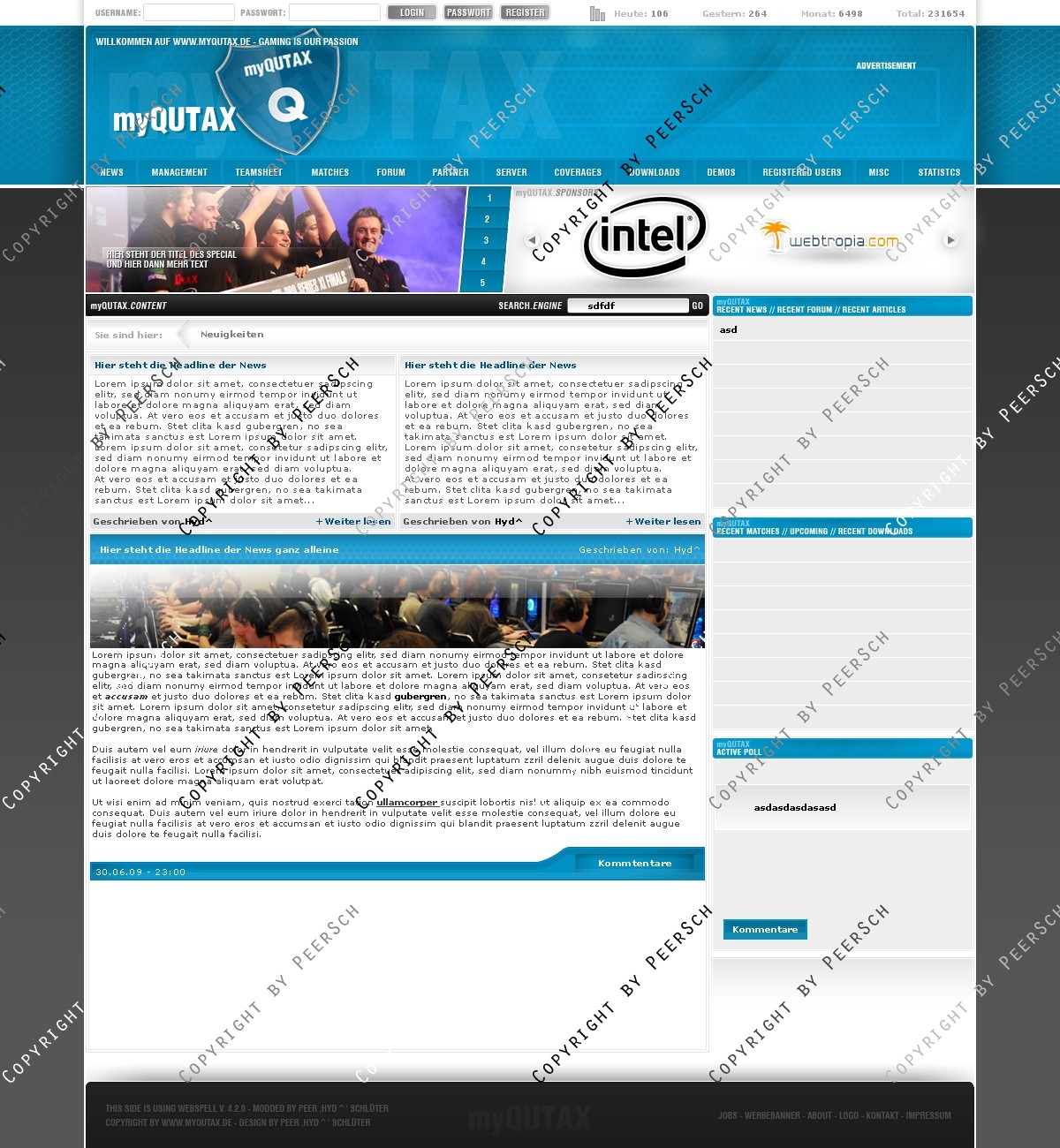 Das Template ist sehr übersichtlich gestaltet und modern. Zudem gibt es noch viele Extras beim Kauf! Das Template wurde auf webSPELL 4.2.* angepasst. Das bedeutet es ist mit jeder webSPELL version ab 4.2. aufwärtskompatibel.