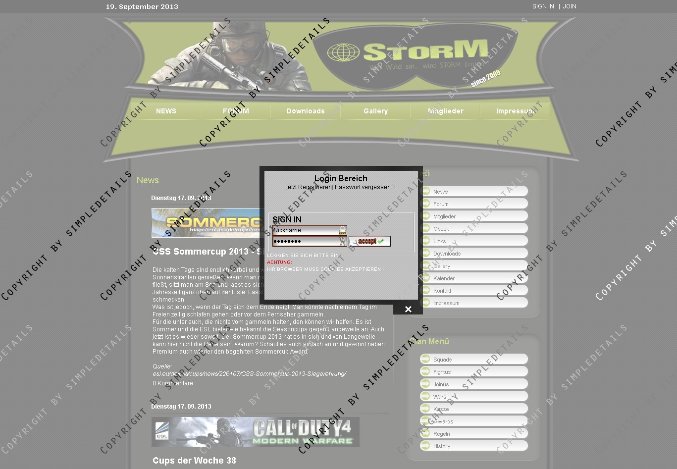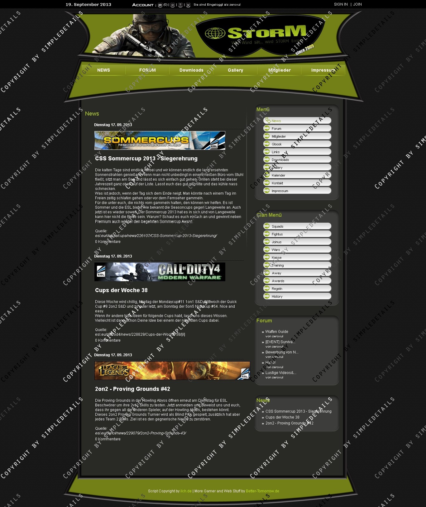 Im Header ist ein Clan-Logo eingebunden, das auch in der .PSD Datei vorhanden ist, und frei angepasst werden kann.