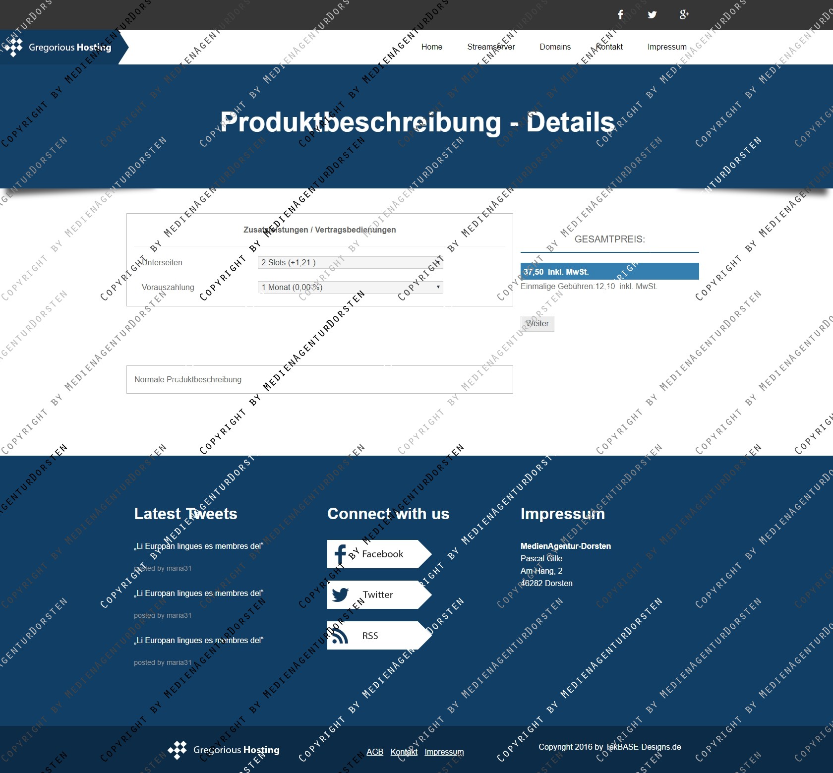Hierbei handelt es sich um die Version 1.0 von unseren Gregorious Hosting Design. Das Design ist mittels Bootstrap Programmiert und ist Mobilfähig.