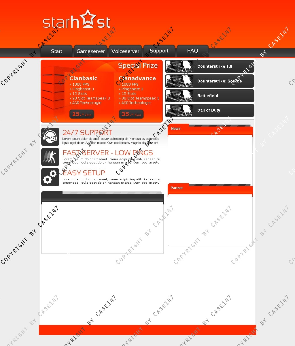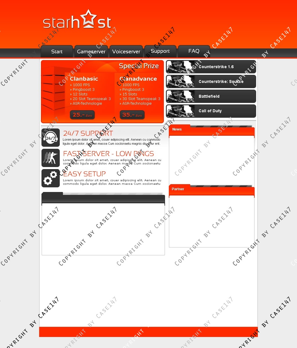 die Hosting-Webseite wurde tabellenlos in HTML/ CSS umgesetzt.